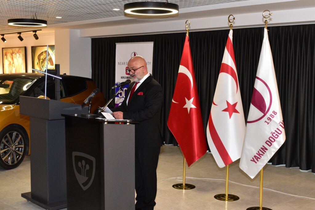 Yakın Doğu Üniversitesi Rektörü Prof. Dr. Tamer Şanlıdağ, konuşmasına “Yakın Doğu Üniversitesi’nin hafızasında derin ve silinmez izler bırakmış çok kıymetli bir ismin, merhum Rektörümüz Prof. Dr. Ümit Hassan anısına açılan bu sergide bir arada olmaktan büyük bir onur duyuyorum” sözleri ile başladı.